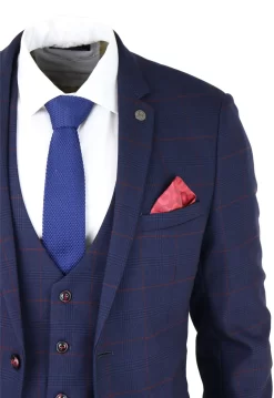 β’ Soft Navy Blue Fabric With Subtle Red Windowpane Check Detail