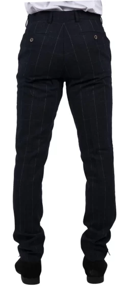 * Mens Navy Check Vintage Tweed Trousers Regular Length