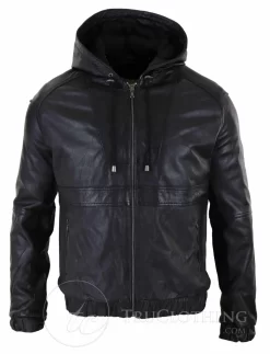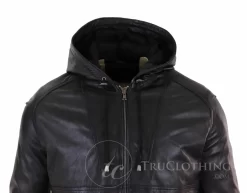 - Men’s Genuine Leather Jacket Hooded Bomber Style