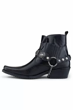 - Slip-On Style Boots With Metal & Leather Chain Detailing (removable chain)