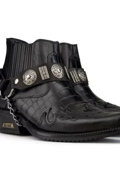 - Ankle Cowboy Boots Made From Real Hide Leather (Crocodile Texture) Available In Black & Brown