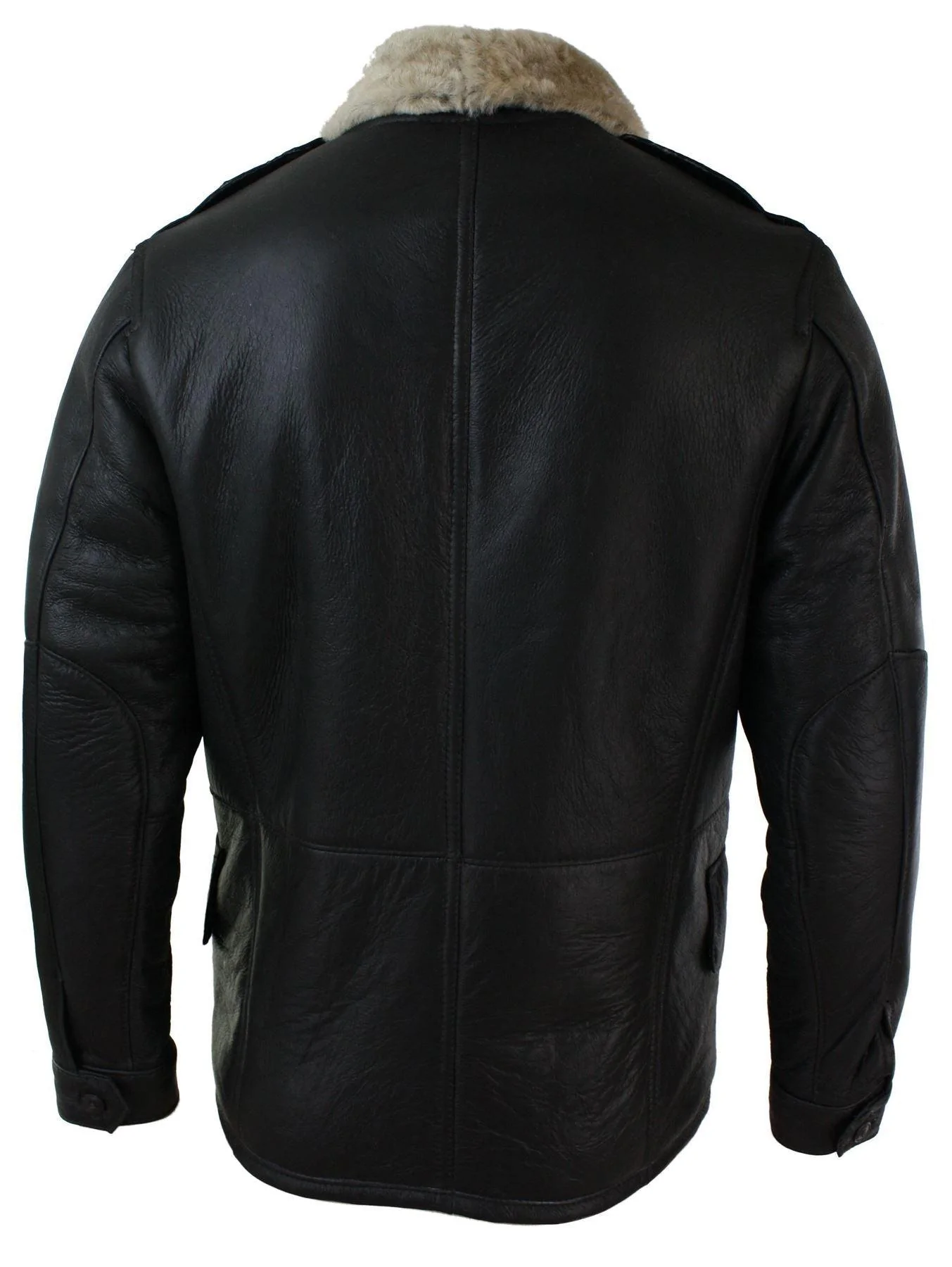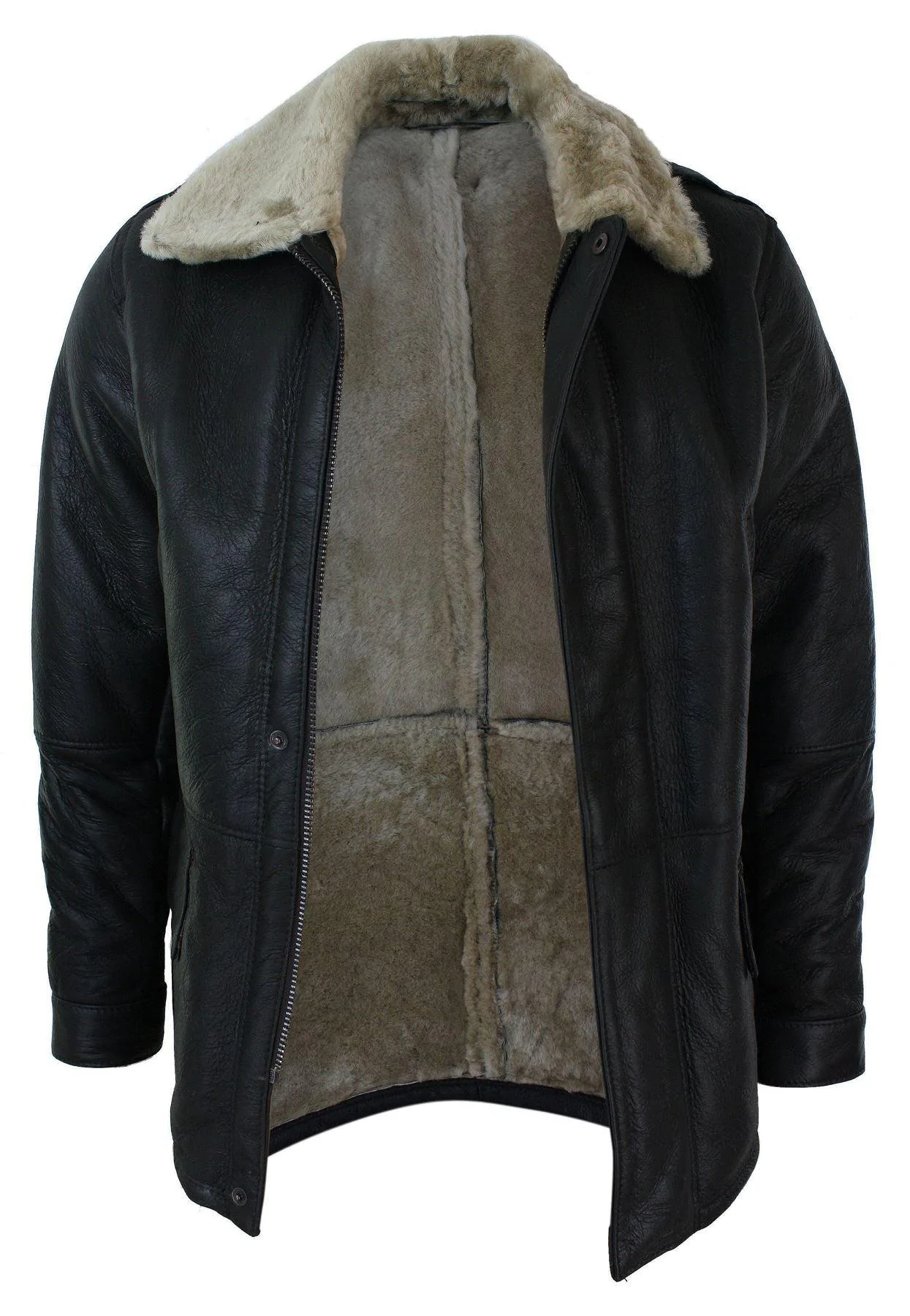 Menโs 3/4 Brown Hooded Genuine Sherling Sheepskin Long Duffle Coat
