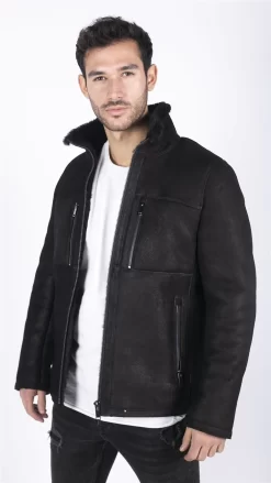 * Waist Length Zipped Genuine Sheepskin Jacket Finished In Vintage Black