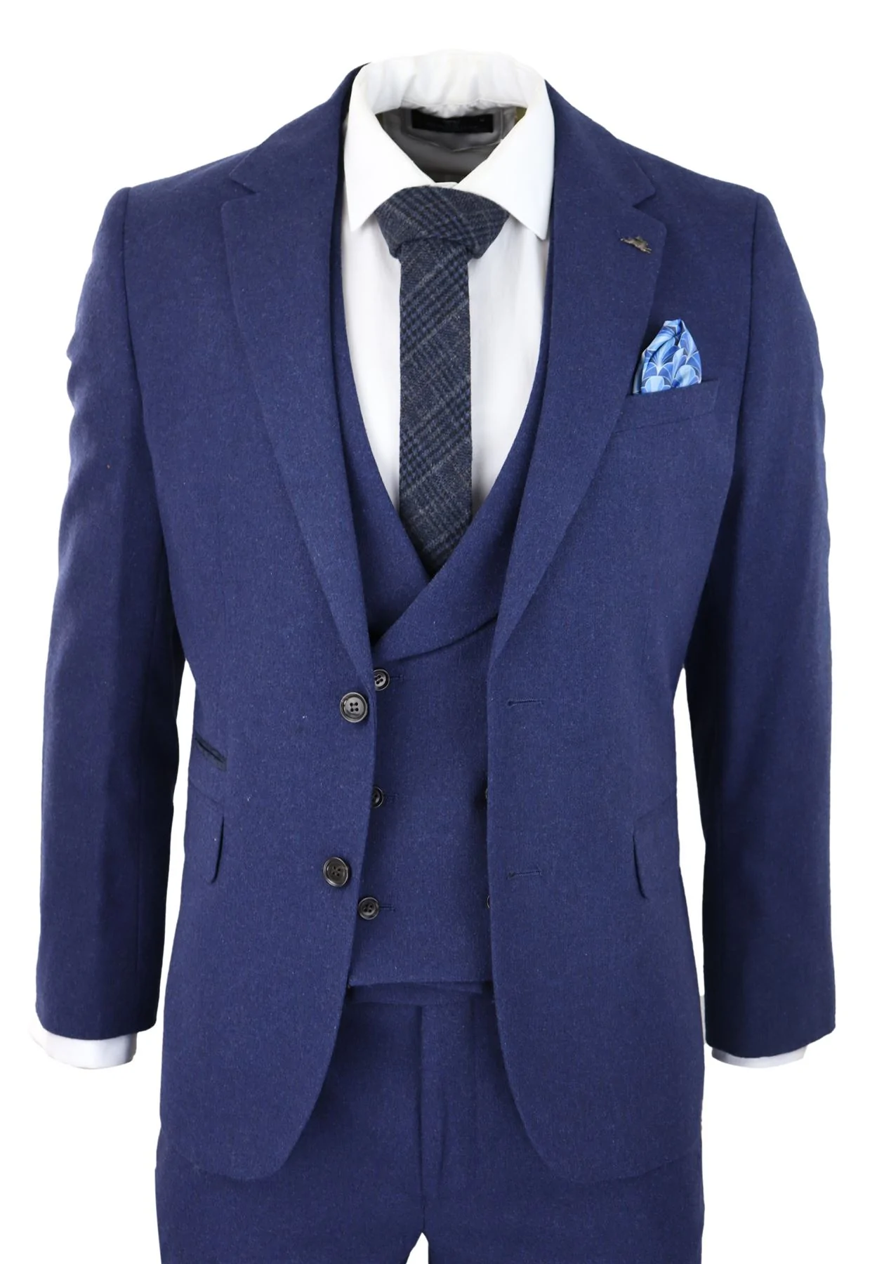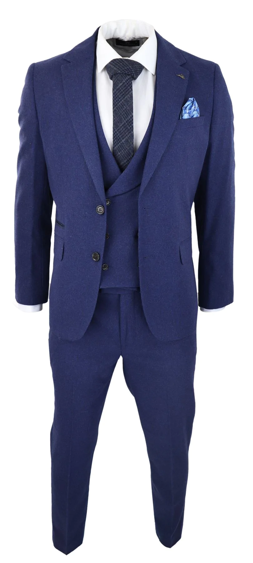 * Mens 3 Piece Wool Rich Suit Complete With Blazer, Waistcoat & Trousers