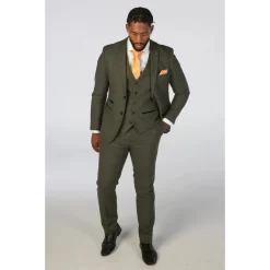 * Olive Green Tweed Finish: The suit’s rich olive green hue in a classic tweed pattern brings a unique yet versatile color to your wardrobe, suitable for both business and social events