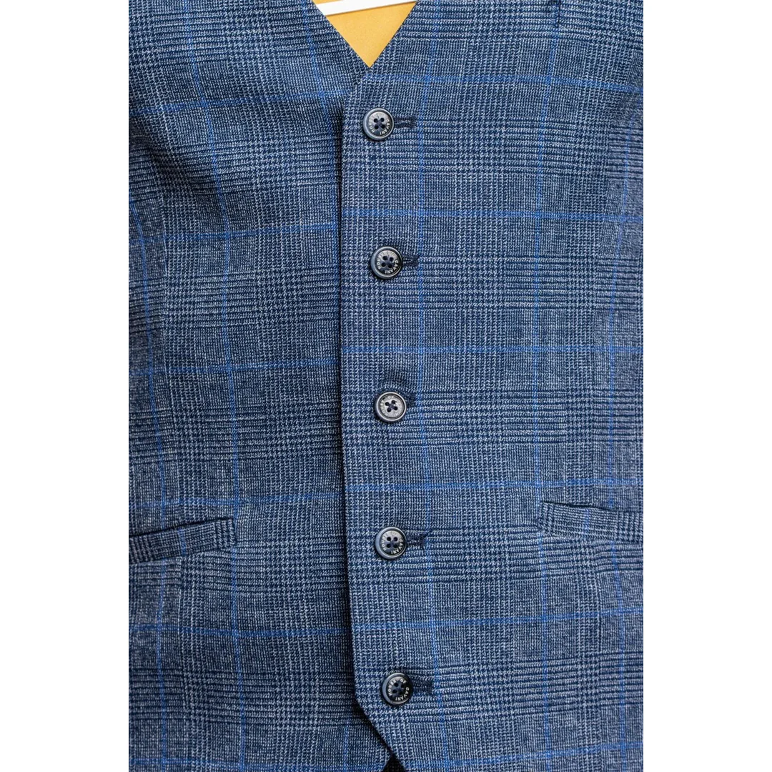 * Elevate your professional wardrobe with the Phantom Men’s Blue Check Waistcoat, featuring a captivating prince of Wales blue check pattern that exudes sophistication.