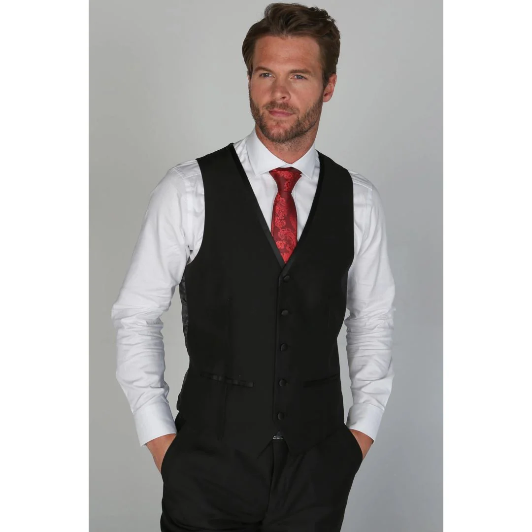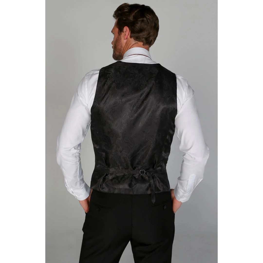 * Versatile Elegance: Elevate your look effortlessly with our Regent Black waistcoat, a versatile piece that effortlessly transitions from formal to casual settings.