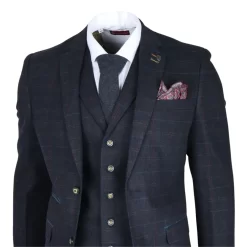 * Timeless Elegance: Crafted from a premium wool blend, this navy blue herringbone check tweed suit combines classic British style with contemporary sophistication, making it a must-have for any gentleman’s wardrobe