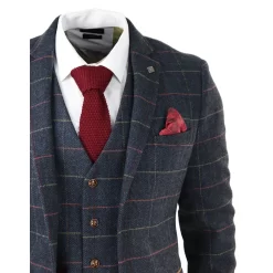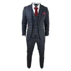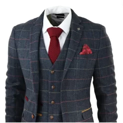 * Classic and Elegant Design: This men’s 3-piece suit features a timeless navy color and a sophisticated herringbone tweed check pattern, making it perfect for formal occasions.