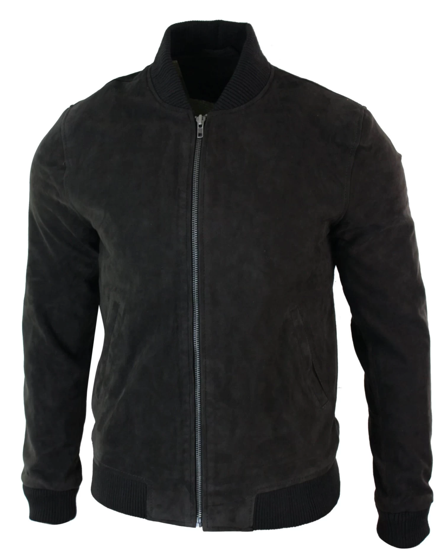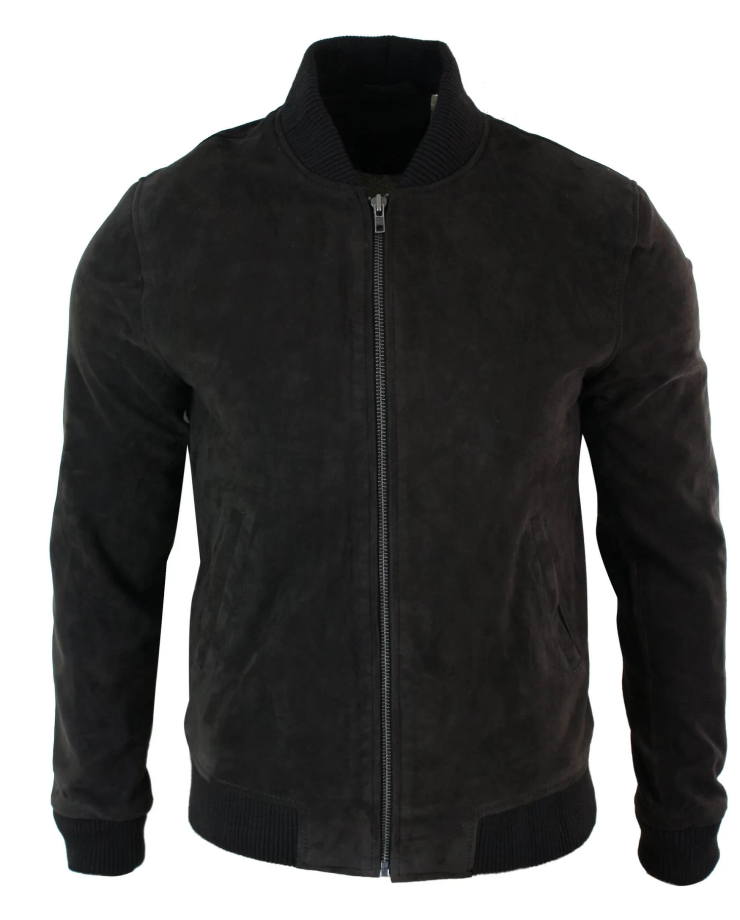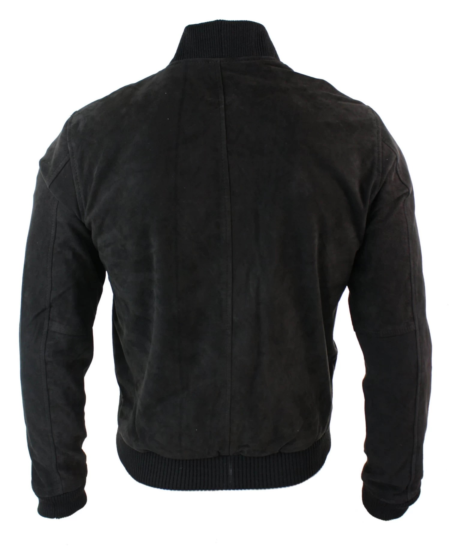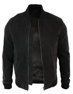 Mens Classic Bomber Black Nubuck Washed Brown Real Leather Jacket-Black