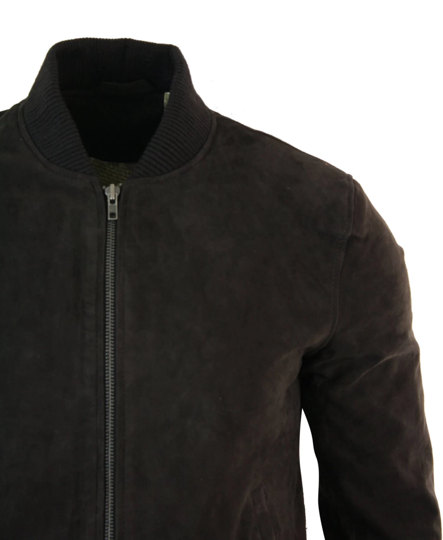 Mens Genuine Suede Bomber Jacket Leather Casual Varsity VIntage Smart Casual Brown