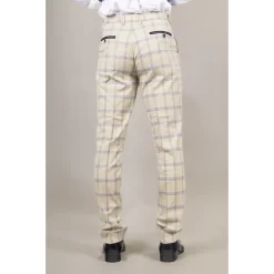 * Timeless Checked Design: These trousers feature a classic beige checked pattern, adding a touch of sophistication and versatility to your wardrobe